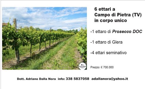 1)Vigneto di 10 ettari Liso Pramaggiore in corpo unico irrigato e drenato in ottima posizione. A B1 2,5 ha di Prosecco DOC, 1,5 ha Pinot Grigio, 1 ha di chardonnay, 2,7 ha Cabernet, 1 ha Merlot, 0,4 ha di Malbek, 1 ha Cabernet Sauvignon. Piante recentissime in piena produzione . Il vigneto è irrigato e meccanizzato. euro 1.700.000 trattabile.